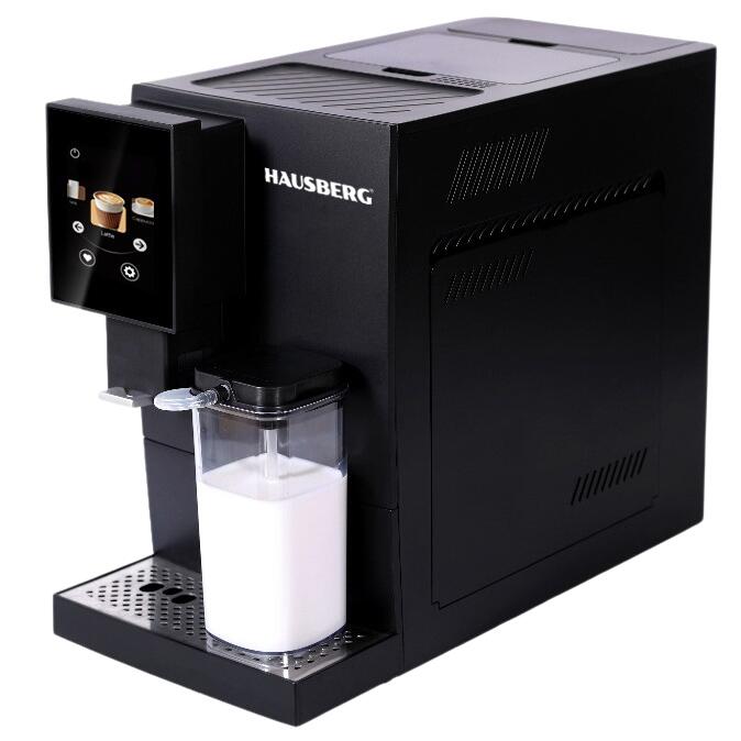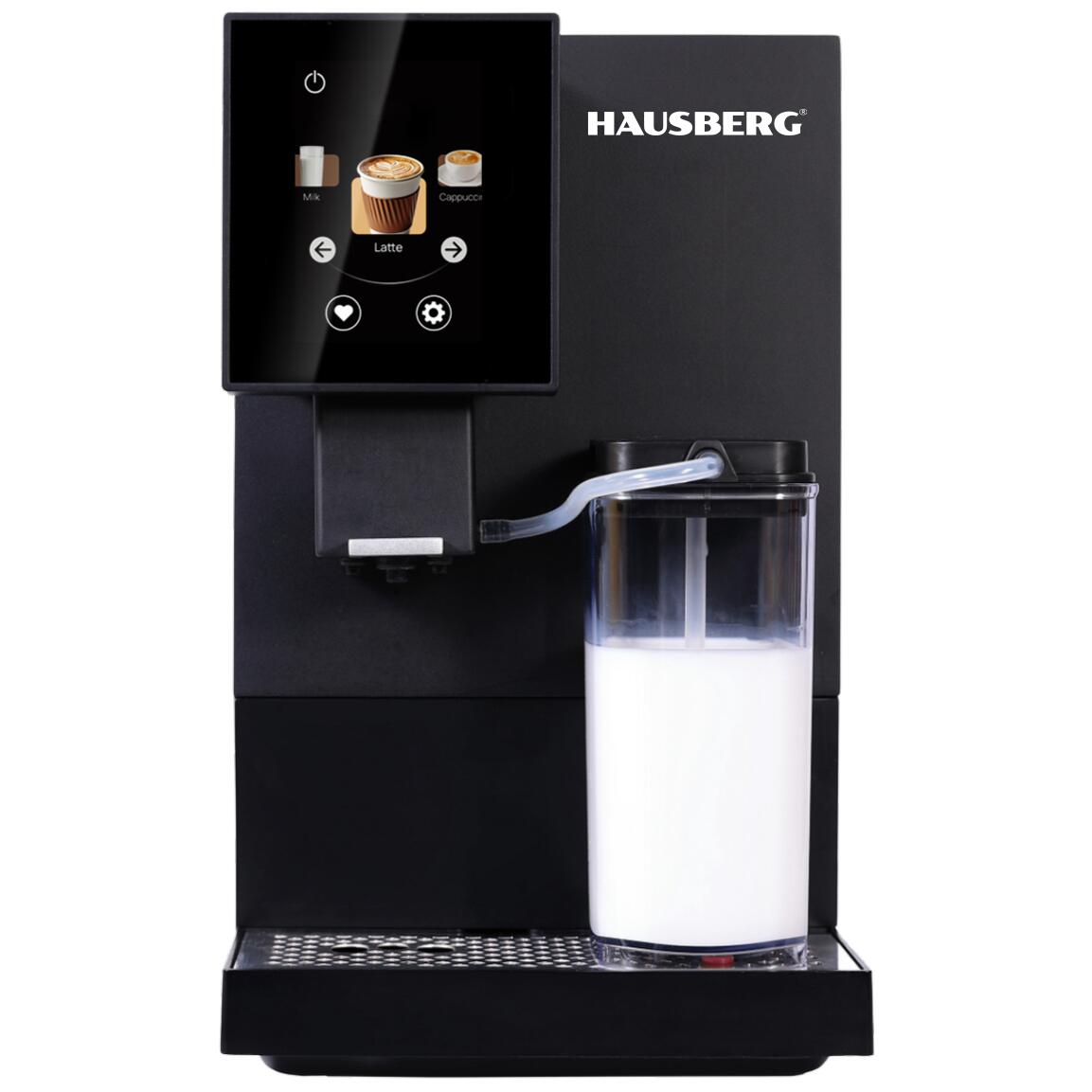 Aparat de cafea digital Hausberg HB3775NG, automat boabe, ecran tactil TFT 3.5", cappuccino/latte, recipient lapte 400 ml, rezervor 1.1 L, 1100-1350 W