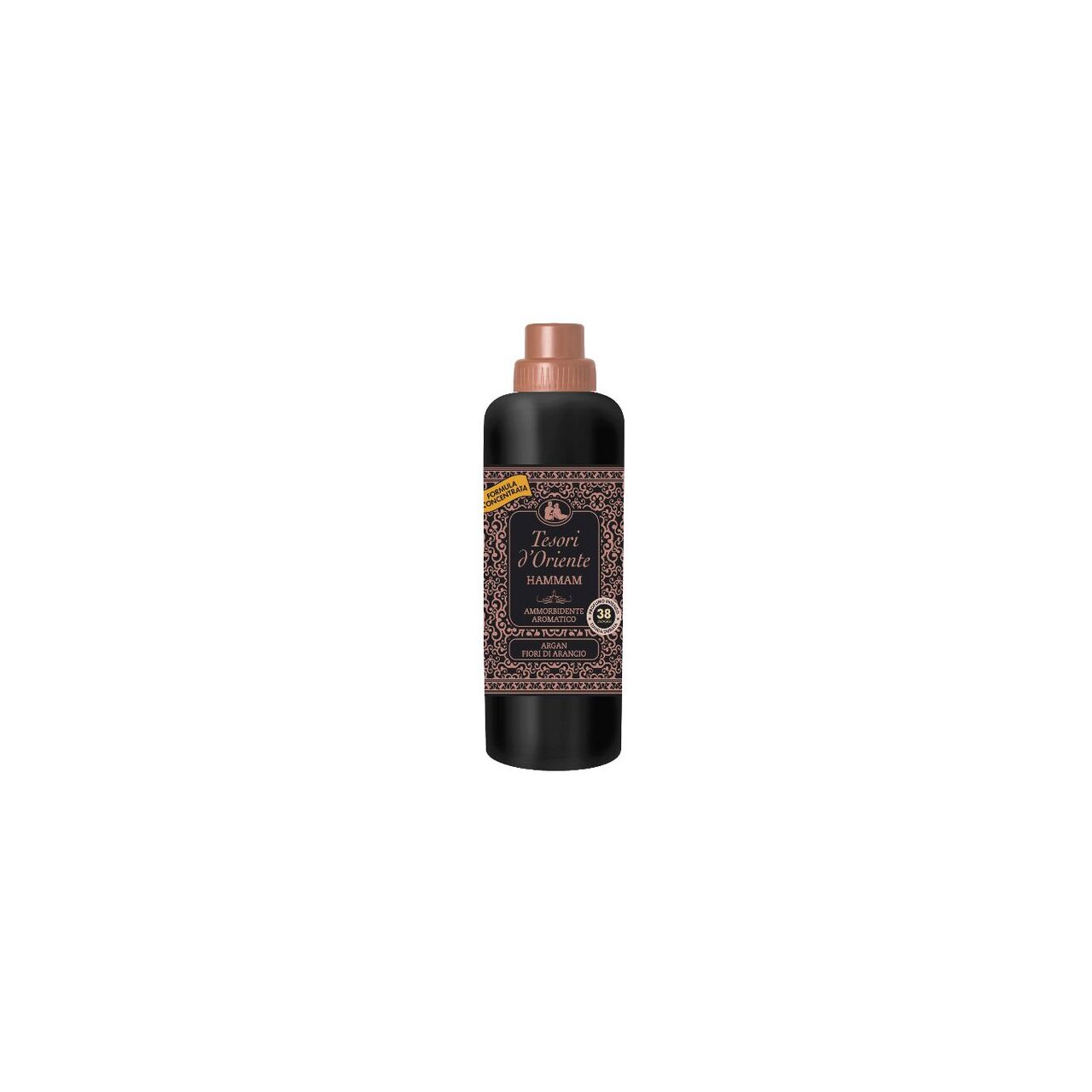 Esenta floral-orientala a parfumului Tesori d’Oriente HAMMAM, care imbina notele de varf de mandarina si flori de migdale cu mixul seducator de flori de portocal si iasomie, se regaseste acum si in balsamul de rufe. Formula balsamului HAMMAM este imbogatita cu ulei pretios de argan cu care hainele devin moi, confortabile, usor de calcat.