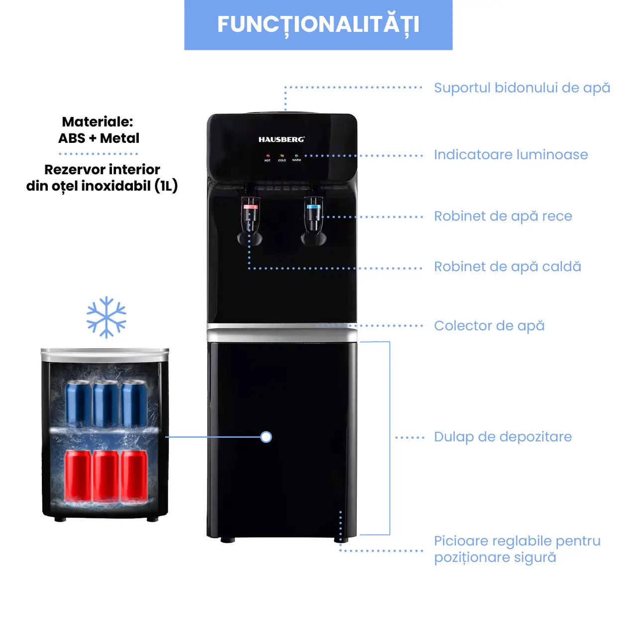 In conclusion, the HAUSBERG HB-6023NG water dispenser is a complete and efficient solution for quick access to drinking water, hot or cold, perfectly adapting to the needs and preferences of users, whether it is a busy office or the comfort of your own home.
