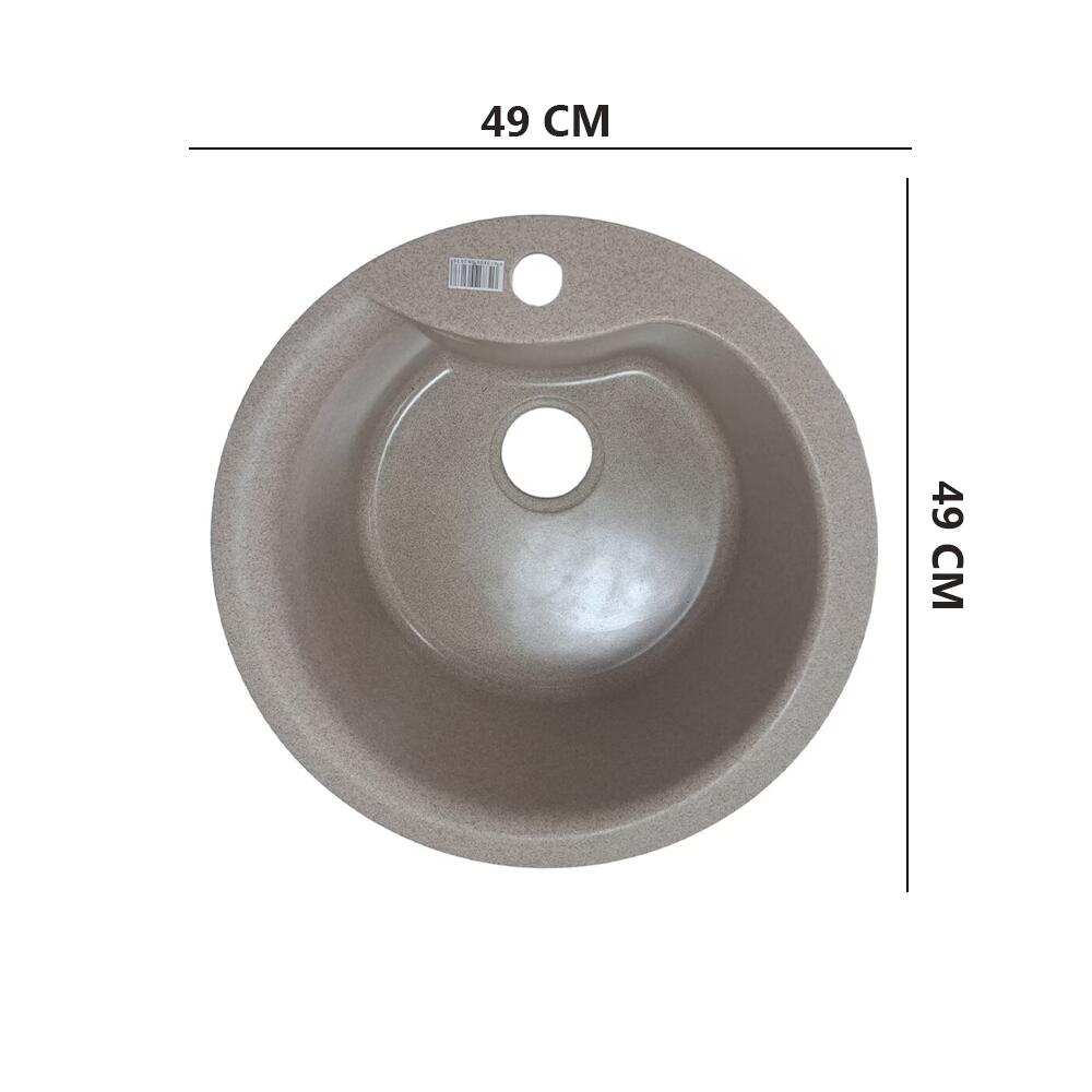 Round shape, beige color, matte finish, one tub, with a depth of 20 cm and a total diameter of 49 cm. Recessed mounting. The product is easy to maintain and integrates successfully into any kitchen, thanks to its modern and minimalist design.