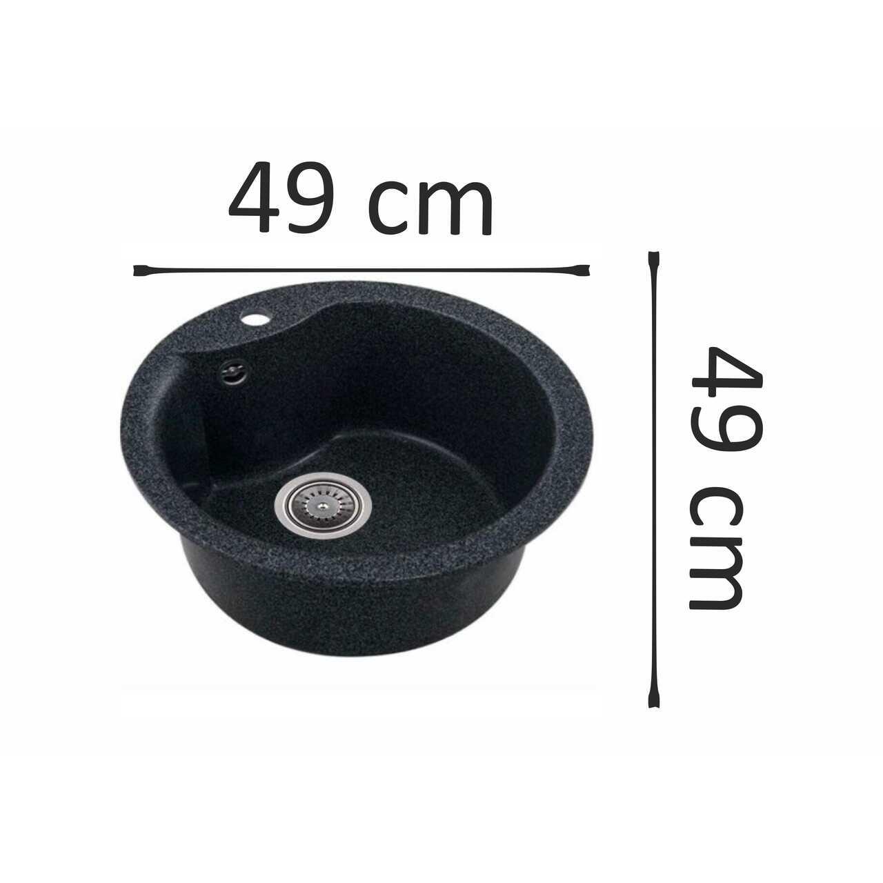 The Sanitec PI kitchen sink has a round shape, black color , a single bowl , with a depth of 20 cm and a bowl diameter of 40 cm. The total diameter of the sink is 49 cm.