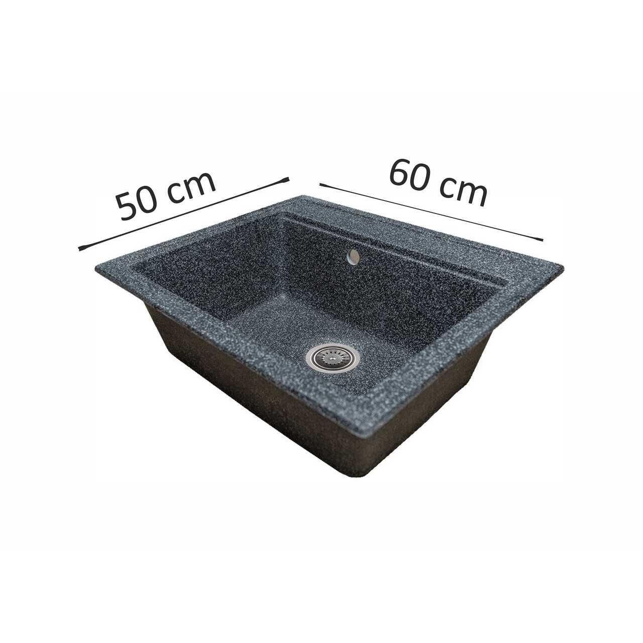 L'évier est de forme rectangulaire , de couleur noire , possède une seule cuve d'une profondeur de 20 cm et des dimensions de 50 x 37 cm.