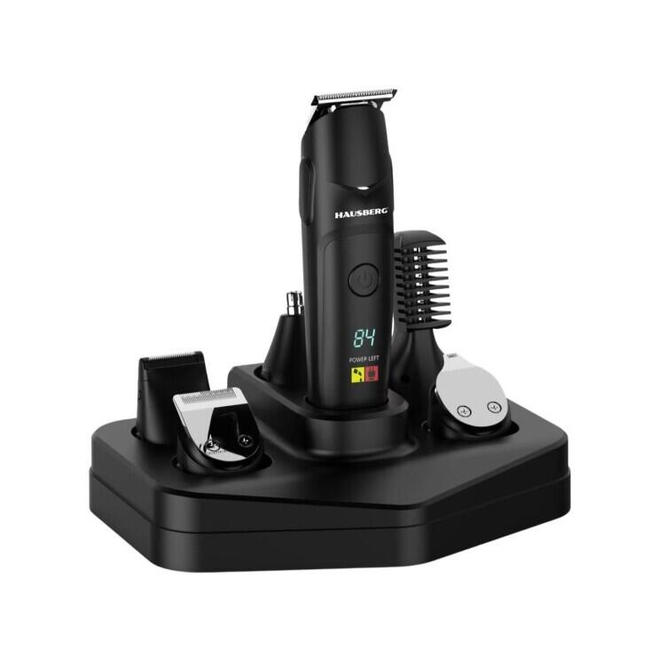 Setul de tuns reincarcabil Hausberg HB-97NG este un kit complet pentru grooming, conceput pentru intretinere par, barba, corp si detalii fine. Afisajul digital integrat arata nivelul bateriei de la 001 la 100, oferind control total asupra utilizarii.